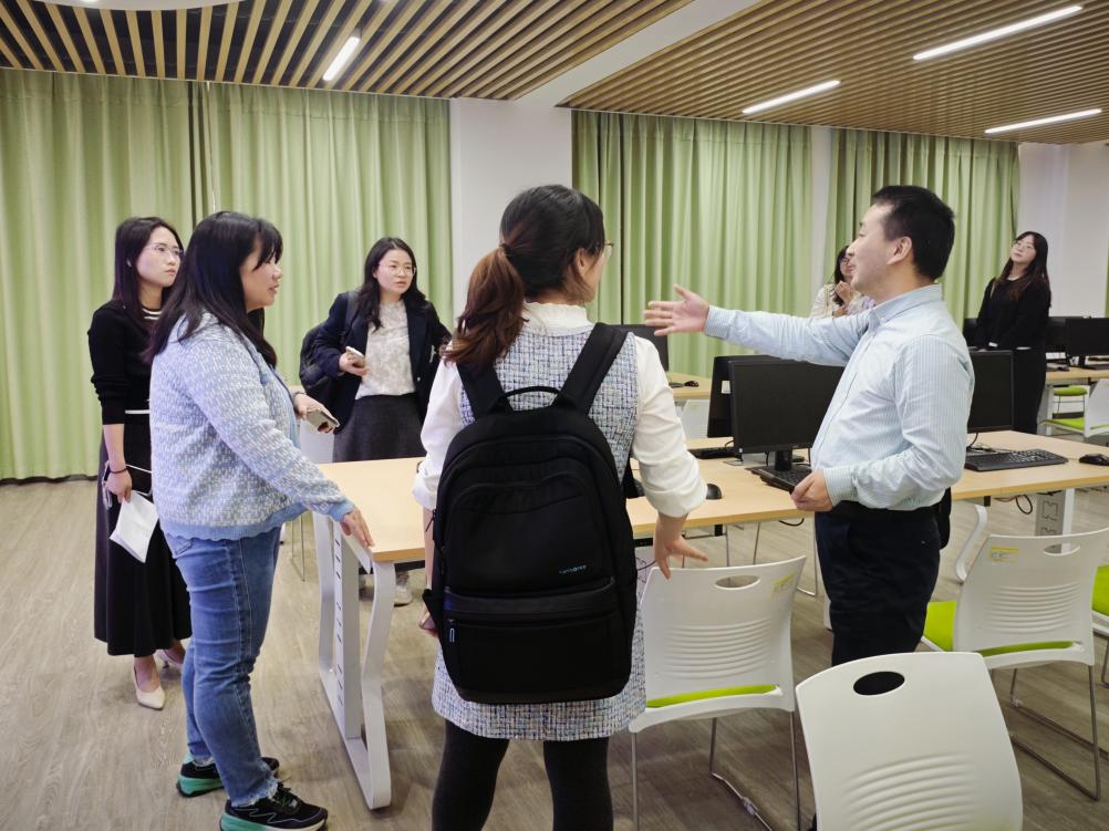 交流接近尾声时,两校代表一同前往学校新建成的图书馆合影留念。这座现代化的图书馆作为教学资源建设的关键载体,其先进的设施配备与浓郁的学术氛围,使来访嘉宾真切体会到我校持续提升的办学实力与育人环境。