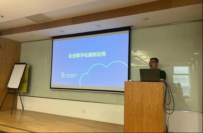 随后开展了金蝶企业数字化最新应用的专题讲座,魏佳丹总监从财务管理、区块链、人工智能和集成服务等方面介绍了金蝶云系列产品,讲解了产品定位助力企业构建生态平台,提高资源的使用效率。魏佳丹总监强调企业数字化智能转型趋势的重要性,让同学们认知目前财会专业在云计算、大数据、移动互联网及人工智能等新型技术的推动下,未来企业管理模式的转型。