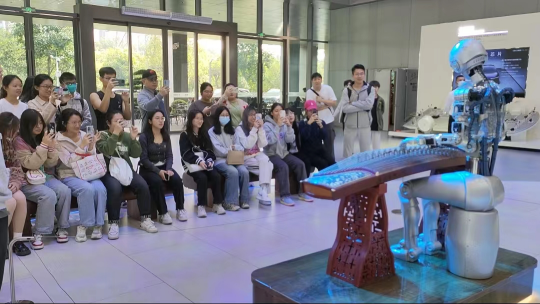 在不断革新技术和承担社会责任的同时,广汽也对未来做出了规划。同学们跟随讲解员也来到了最后一个区域——面向未来。面向未来区域展示了广汽丰田在科技创新方面的成果,智能芯片、AI互动、一台台蕴含着创新思想的概念汽车展示在同学们眼前。广汽丰田敢于创新,勇于突破,这也是其在汽车行业保持领先地位的关键。在讲解的最后,讲解员邀请了机器人伙伴为同学们弹奏了古筝曲目。