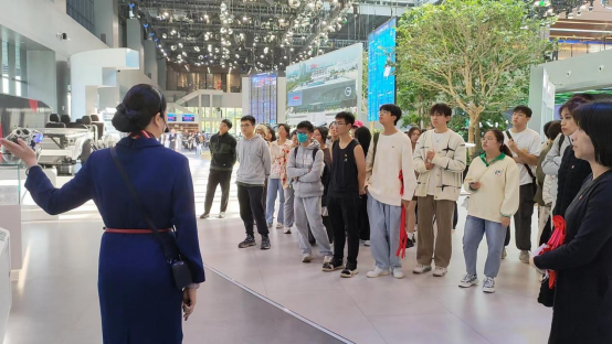 广汽丰田科技馆是一座集展览、培训、研究为一体的现代化科技馆,它展示了广汽丰田公司在技术和创新方面的成就。同学们首先来到的是智能联网和动力科技模块,在这里学习到了广汽丰田的发展历史、企业结构、核心价值观等方面的知识。同时还了解到了广汽丰田的新技术、新产品和人性化的智能汽车服务。