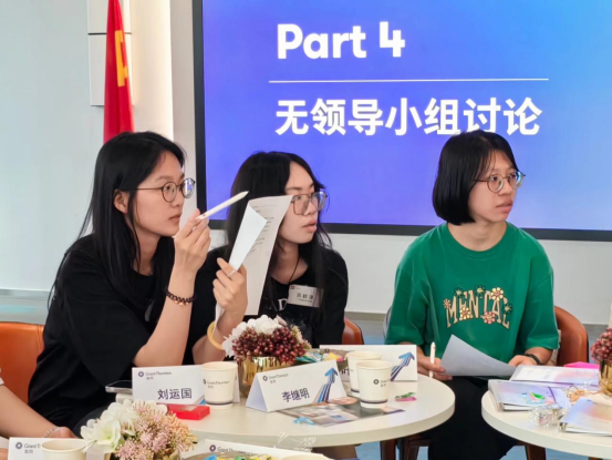 紧接着,由工作人员带领同学们参观事务所后,同学们踏入模拟企业面试的实战场,参与了一场紧张而充满挑战的无领导小组讨论。在这个逼真的招聘面试场景中,他们分成AB两组,围绕同一问题不同观点展开激烈的组内讨论。大家积极参与,各抒己见,展现出自己的思维和分析能力。