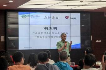 紧接着,胡玉明教授就周总的分享做出了简单的点评发言,强调指出财务会计要注重规矩,而对于管理会计来说则应打破财务会计的框架,应拓宽思维,打开视野,用更为宏观的视角看未来经济的发展。