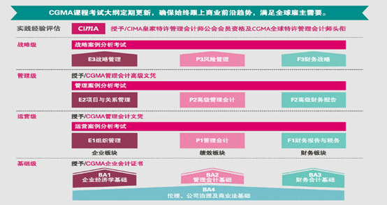CIMA特许管理会计师资格认证知识体系、能帮助学员综合利用各种类数据,为企业提供全面预算、财务分析、绩效评估、风险防范、组织管理和商业决策略等切实方案;能提高参与经营管理和战略决策的能力,帮助企业实现“财务支持战略决策,战略融于财务管理”的目标。